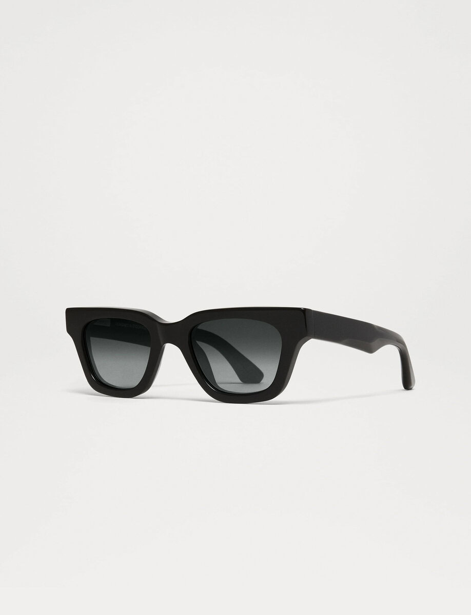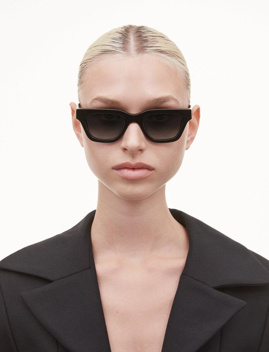 11 is an elegant and androgynous wayfarer silhouette handcrafted in Mazzucchelli acetate. The thick frame is designed to feel graphic and strong, balancing audacious proportions with refined curvature and sleek, beveled temples. Fitted with softly rounded UV-protective CR39 lenses.