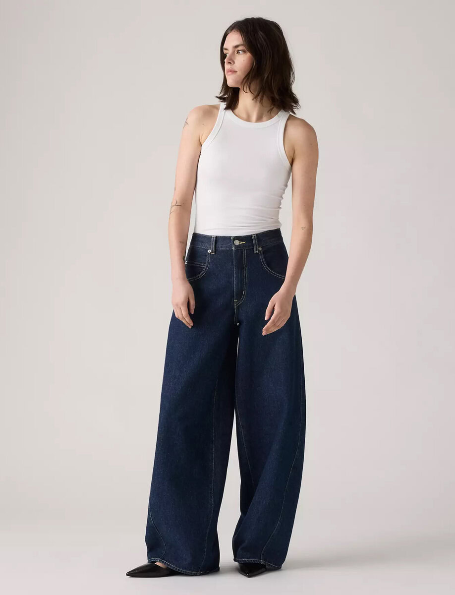 ג׳ינס בגזרה רחבה וקולית, אבל כזה שיושב מושלם גם במותן.