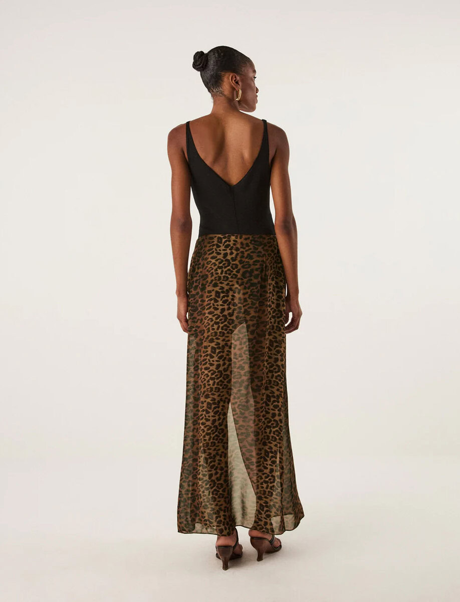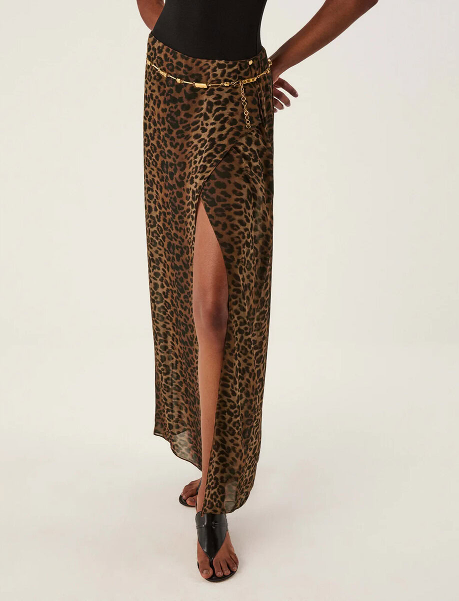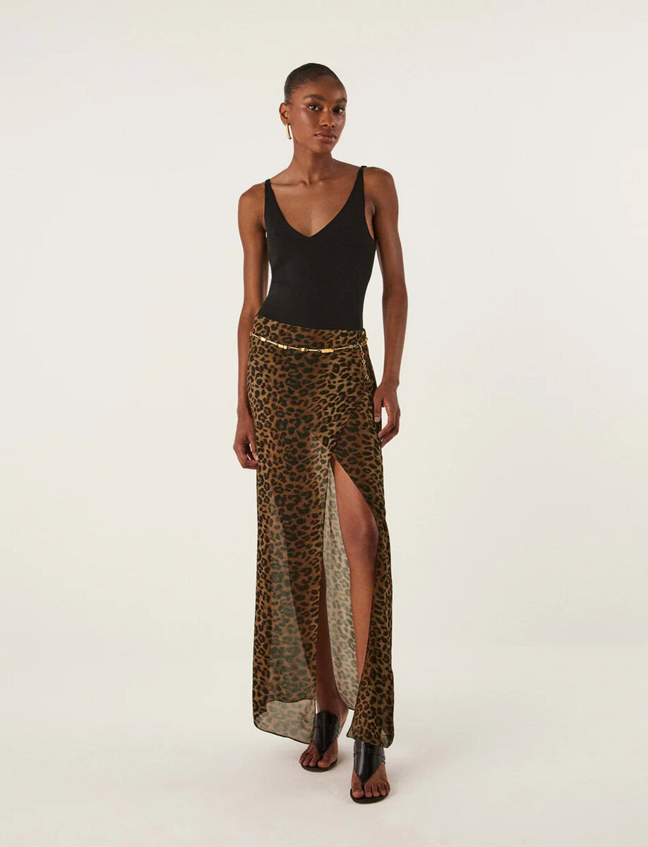 From the ViX + Rosie Huntington-Whiteley collaboration, the Tammy Long Skirt is a maxi silhouette in a striking leopard print, featuring a front slit for a touch of playful drama.