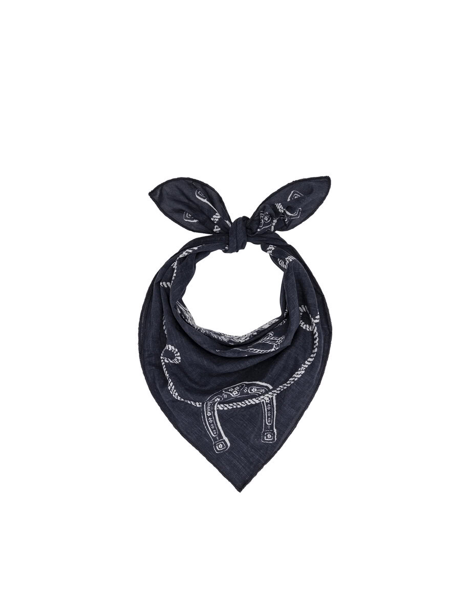 Made in collaboration with Stetson, whose legacy of authentic craftsmanship has defined the spirit of the West since 1865, and inspired by cherished vintage handkerchiefs, the Stetson Western Bandana features a classic Western horse head medallion framed by an intricate rope-and-horseshoe border and signature typography. Crafted from lightweight cotton voile, it has an ultra-soft hand and a lived-in wash for an effortless, worn feel. Updated proportions make it slightly longer for easy styling around the neck, in the hair, or tied to a bag—a timeless accessory that pays homage to classic Western bandanas.