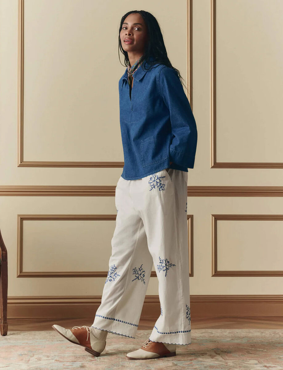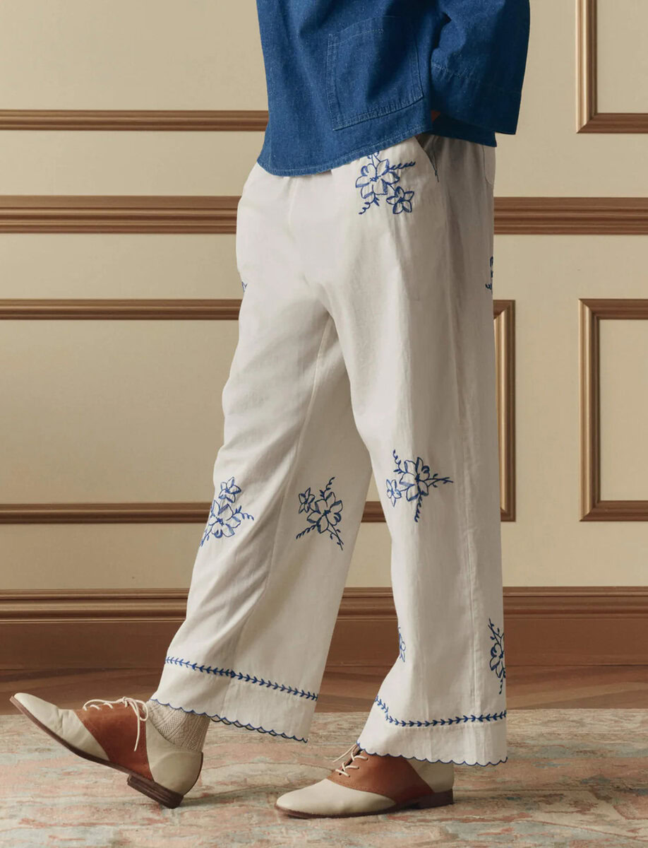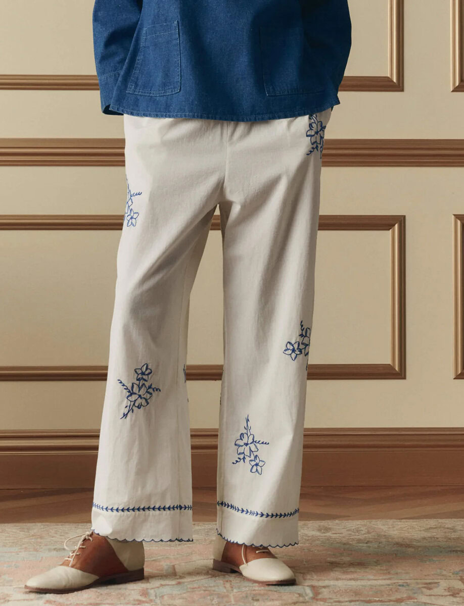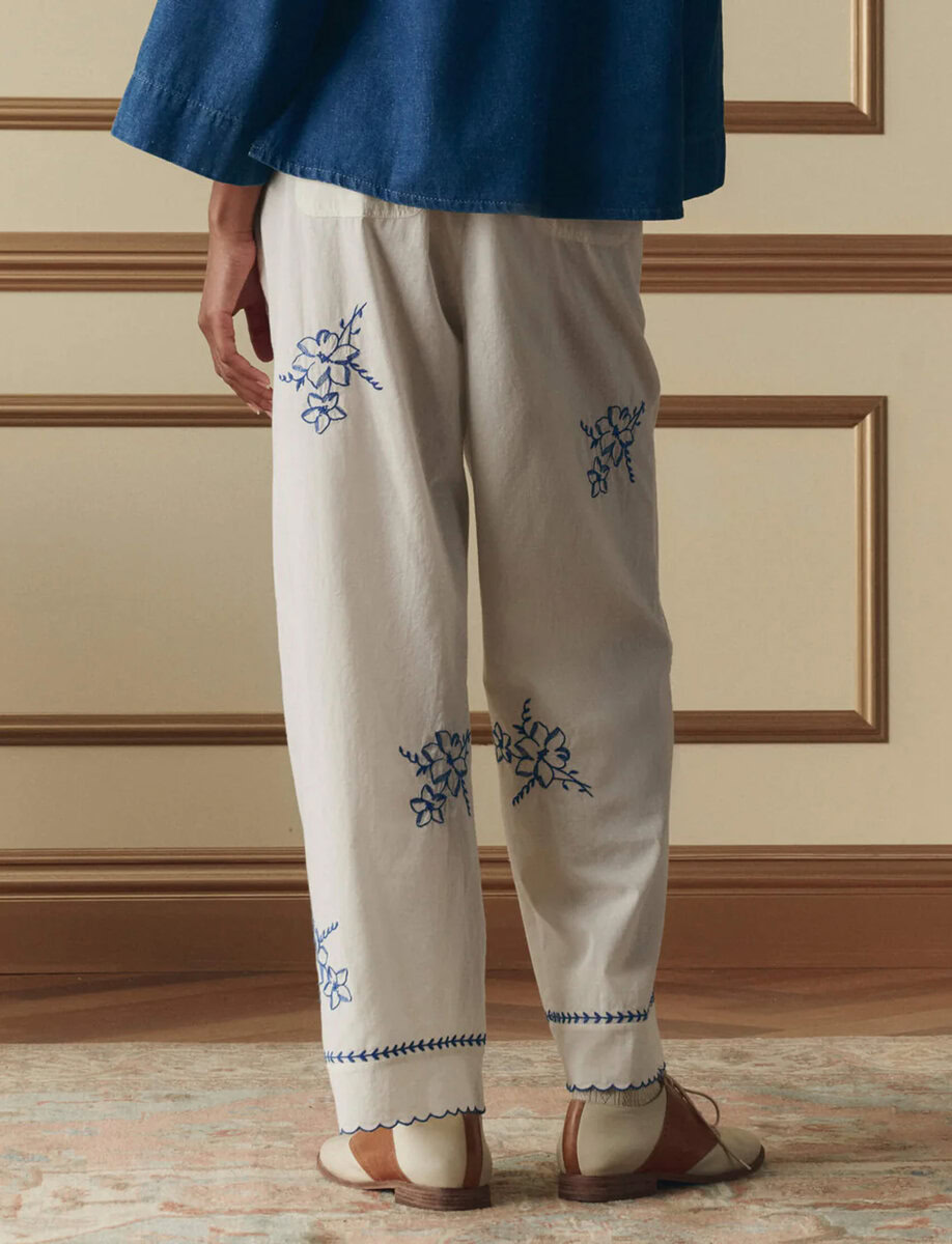 THE WEEKEND PANT W/ HANKY EMBROIDERY | CREAM