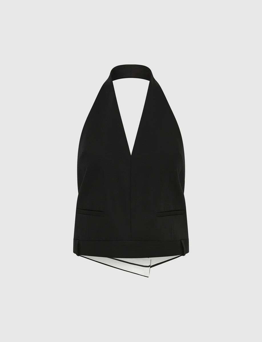 The Upside Down Halter Top is defined by precise tailoring and a striking, inverted construction. Crafted from premium, responsibly sourced wool, the Upside Down Halter Top features a halter v-neckline and is shaped with bust darts for subtle structure. Welt pockets and a banded waist with belt loops introduce a utilitarian edge. Cut to a tailored fit, the Upside Down Halter Top offers a refined balance of strength and ease.
