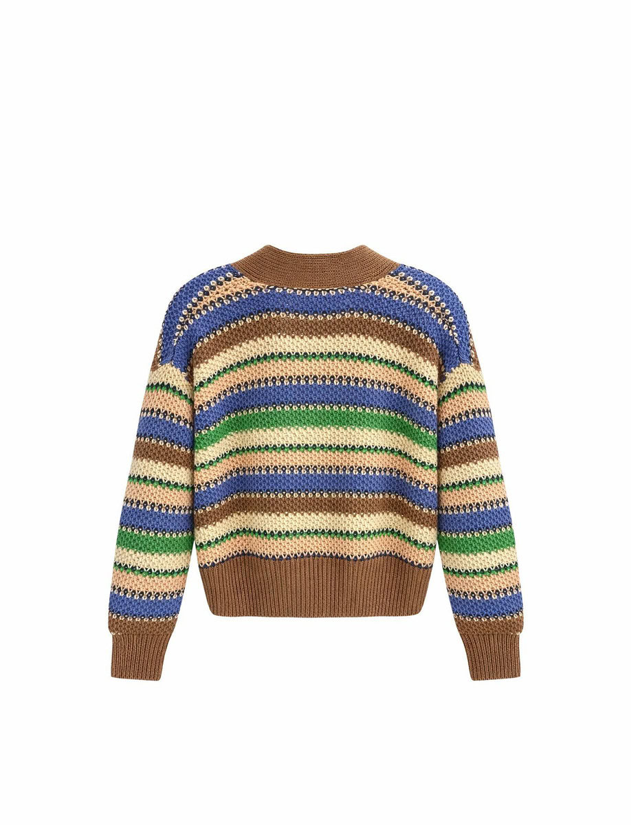 שילוב הפסים הצבעוניים בגווני חום, כחול, ירוק ושמנת מוסיף עומק ועניין, והופך אותו לפריט בולט שמשדר סטייל טבעי עם נגיעה בוהמיינית.