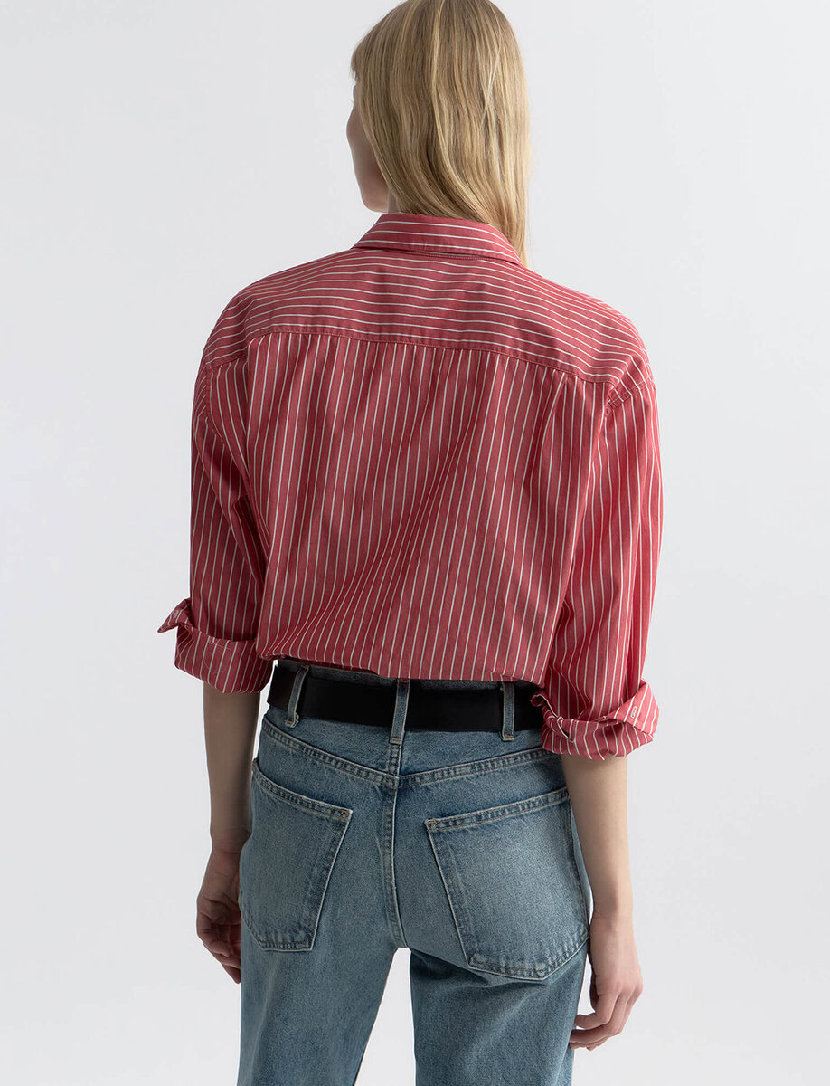 חולצה מכופתרת אוברסייז מבד פופלין כותנה איטלקי איכותי, המשלבת נוחות עם נוכחות בולטת.